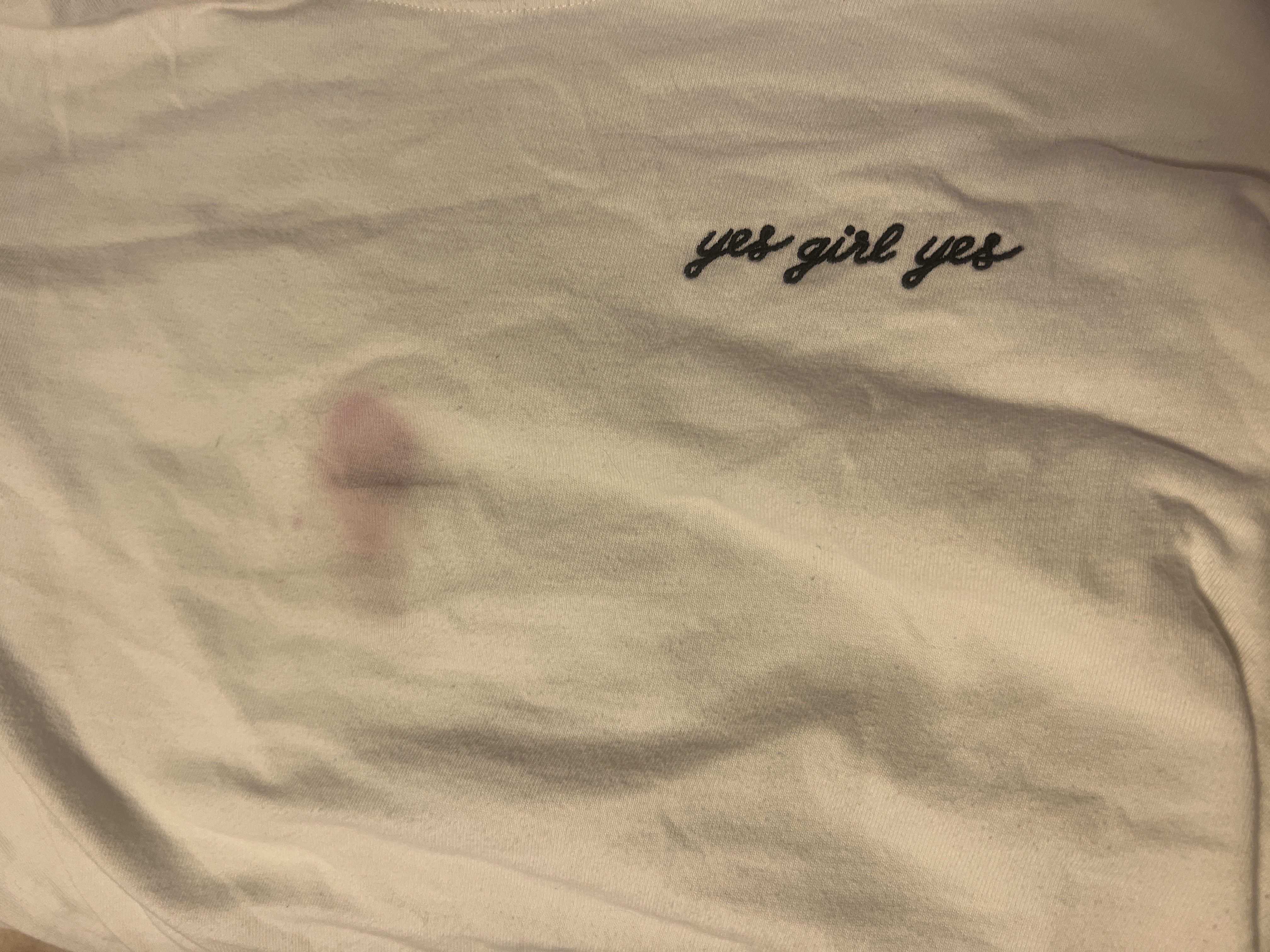 Yes girl yes, stained T-Shirt.
